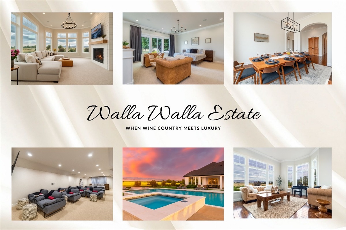 6 Bedrooms • 5 Bathrooms (3 full, 2 half) 5 Baths (3 full, 2 half) • Sleeps 7-12Welcome to the Luxury Estate in Walla Walla with Outdoor heated pool (from April to October) and vineyard views. This stunning 5,252 sq. ft. luxury retreat nestled on 10 private acres in the heart of Walla Walla’s Southside wine region. This elegant estate combines the charm of wine country living with modern amenities designed for ultimate relaxation and entertainment.